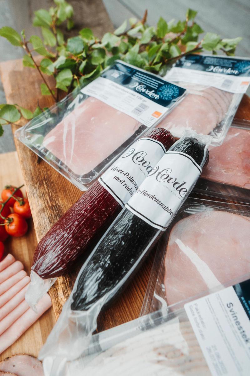 "Ekteparet har skapt sin egen merkevare, Hovden, som tilbyr nydelig skinkepålegg og spekemat i lekre pakninger."