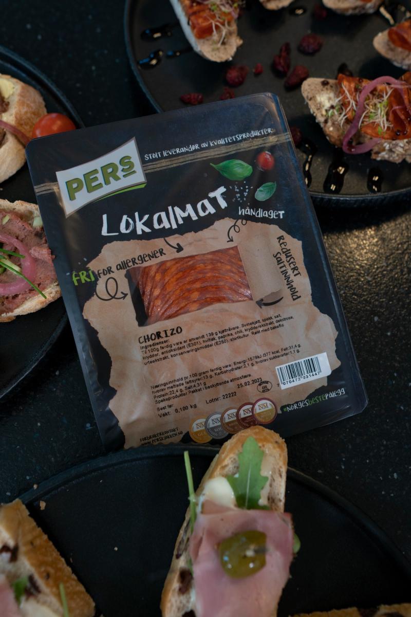 Tore har gått en god skole i familiebedriften. Fra han var en liten gutt har han vært med i produksjonen. Slikt gir resultater. Håndverksbedriften har veggene fulle av diplomer for gullmedaljer i NM i Kjøtt. Delikatessepålegget til Per’s er det pålegget som har vunnet flest slike priser i landet vårt. De er også med i Saltpartnerskapet for å redusere bruken av salt i pålegg. Alt de produserer er fritt for allergener.